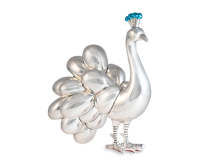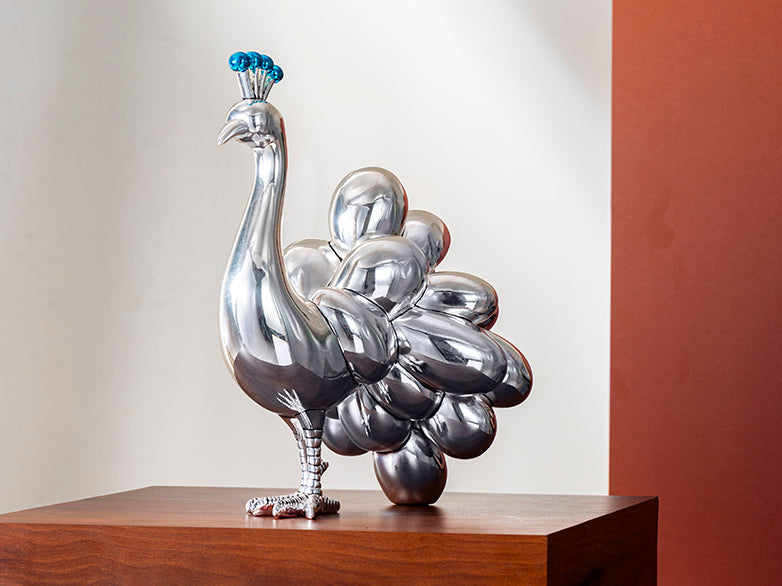 The Azure Aristocrat reimagines the elegance of a peacock in chrome and colour. Sculpted in resin and finished in silver chrome, this decorative peacock idol is part of the Chrome Character collection, where designs are matured over 180 days to reflect impeccable craft and chromatic intent.