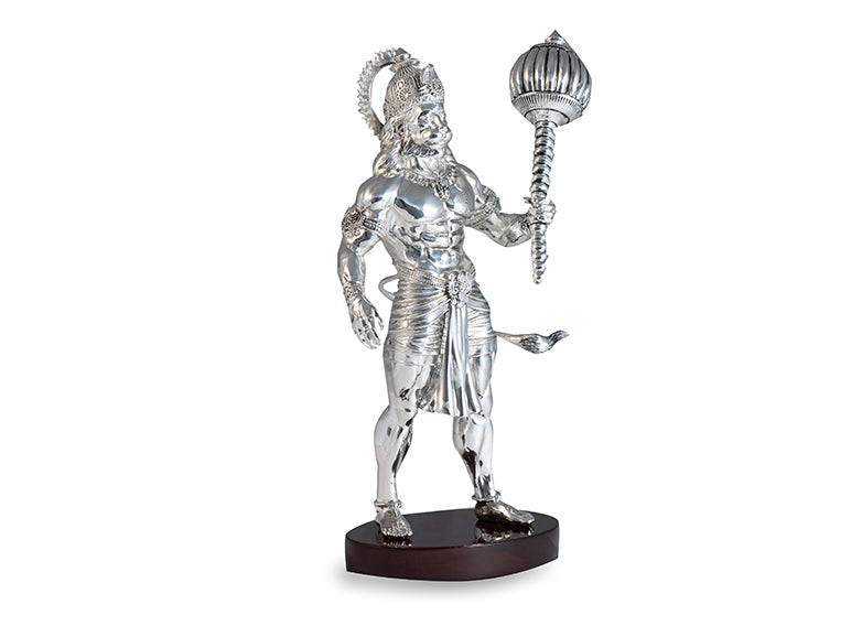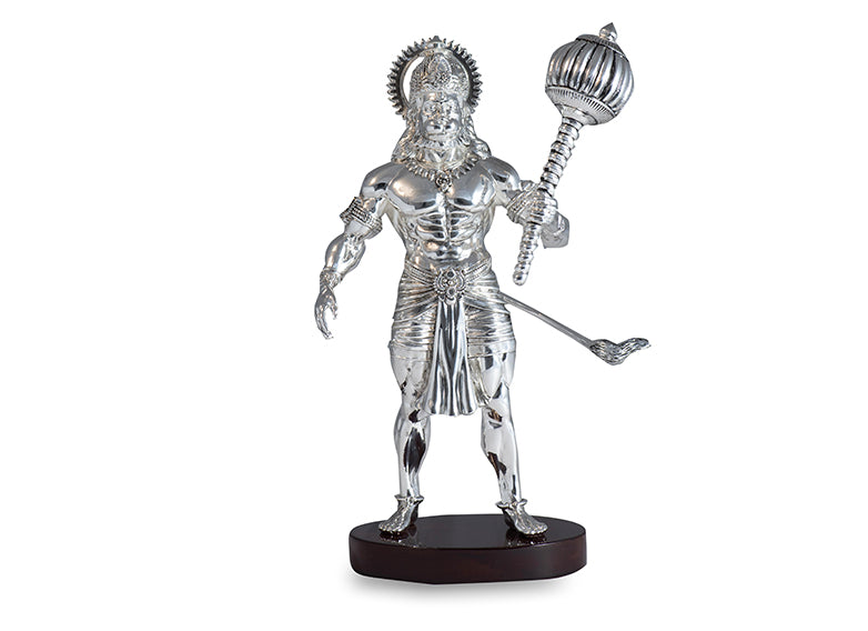 Boundless is a Hanuman statue with mace, captured in a powerful yet graceful stance. Its wide chest and open arms embody protection and compassion, while the lustrous silver chrome finish highlights every sculpted fold and contour.