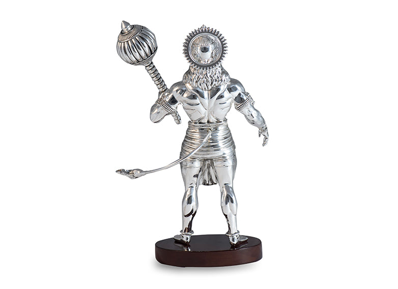 Set on a lacquered wooden base, this silver chrome Hanuman idol serves as spiritual Hanuman decor or a decorative Hanuman statue, perfect for modern living spaces. Ideal as thoughtful housewarming gift items, Boundless is a timeless tribute to courage, loyalty, and fearless devotion, reminding all who see it of the strength in protecting and serving with heart.