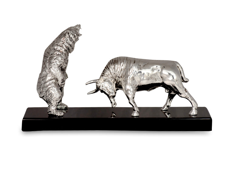 Bull ‘N Bear brings the spirit of the stock market into luxury home decor. Cast in silver and poised mid-duel, this sculpture captures the raw tension and power struggle of financial forces.
