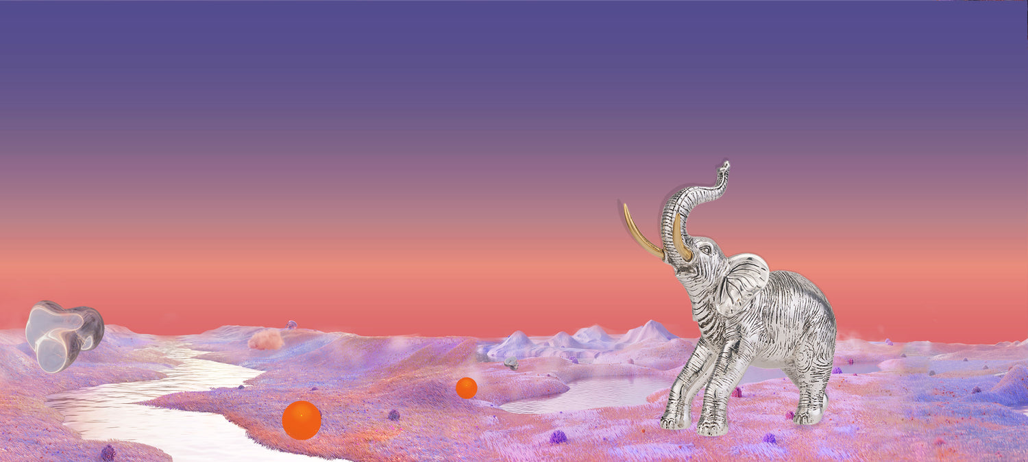 Una encarnación atemporal de la gracia y la suerte, este elefante Trunk-Up recubierto de plata ha sido cuidadosamente diseñado para admirar e inspirar. El revestimiento de plata electroformada sobre resina acentúa los contornos del elefante, y el diseño minimalista evoca una sensación de tranquilidad, al mismo tiempo que refleja la energía del mamífero.