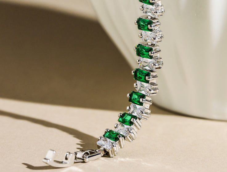 Considered a trendsetter, the Starstream Silver and Green Bracelet from Shazé's Hype Me Up Collection personifies audacious individuality.