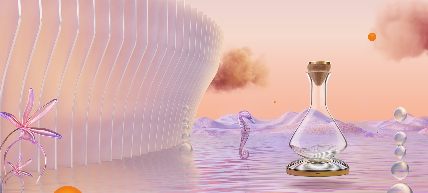 The unique tricoid base is one heavy-duty hunk of steel. Weighing almost 4 kilos, this helps the decanter’s seemingly weightless stance without the worry of tipping, dragging, or breaking. The rippled, casted Zamac base is electroplated to achieve the swoon-worthy two-tone look, adding to the minimalistic flamboyance of the piece.