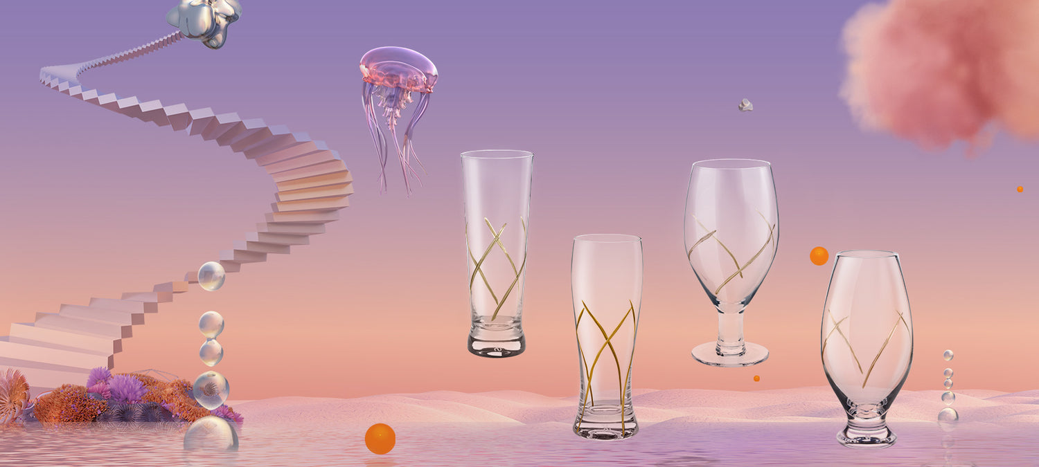 El juego de cristal se compone de dos vasos y dos copas, cada uno de los cuales posee formas distintivas. Simplemente porque, sin darse cuenta, alguien bebe la cerveza del otro cuando su propia cerveza es el camino a seguir.