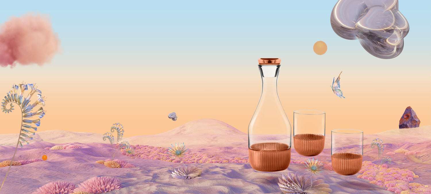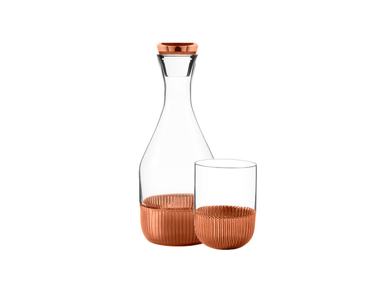 Diseñado para hacer que el agua potable sea uniforme y suave. La clara belleza del cristal moldeado descansa en una calcomanía metálica. Agregue la postura orgullosa de los patrones lineales precisos y el resultado: The Nova.