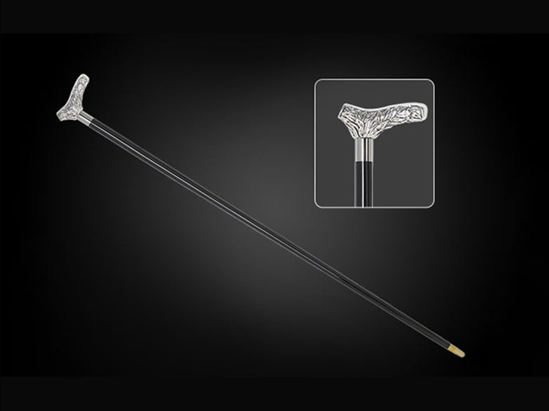 With its elegant structure and intricately designed silver handle, this walking stick looks both regal and stately. The shaft of the walking stick offers both durability and lightweight support, ensuring that every step you take is imbued with confidence and grace. The handle is crafted from resin and plated with electroformed silver. The inner structure of the staff stick is crafted from beechwood with an outer covering of resin.