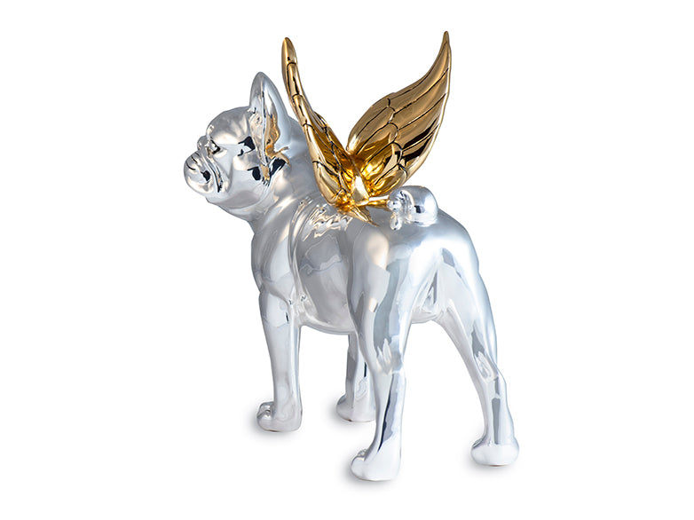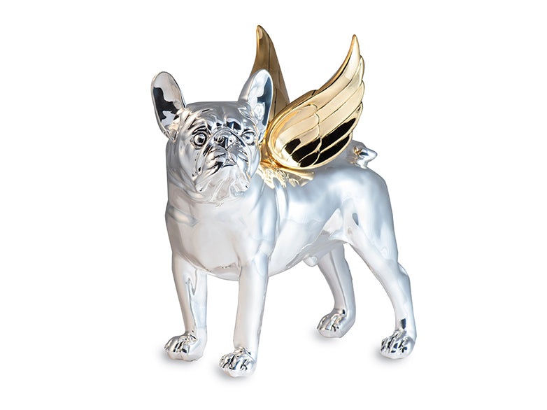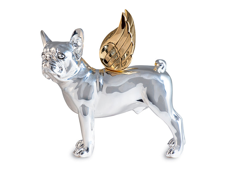 Chrome Edition takes flight with Winged Watcher, crafted for luxury home decor. This chrome-finished French Bulldog stands poised with unmistakable canine confidence and a sharp, modern edge.