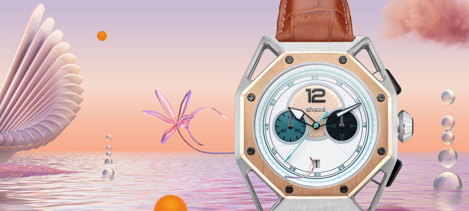 Semer une histoire à travers les éléments célestes affichés sur les cadrans dramatise le look de ces engrenages à main. Avec un design unique à Shazé, des attaches fabriquées avec précision définissent le boîtier de la montre.