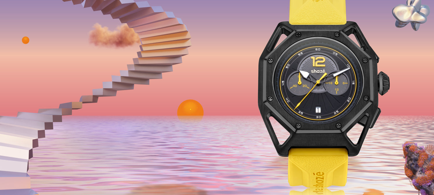 Semer une histoire à travers les éléments célestes affichés sur les cadrans dramatise le look de ces engrenages à main. Avec un design unique à Shazé, des attaches fabriquées avec précision définissent le boîtier de la montre.