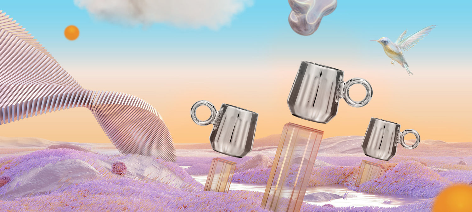 Le grès émaillé constitue la base, tandis qu'une poignée ronde ergonomique complète la tasse, facilitant un levage facile avec l'infusion chaude à l'intérieur. La forme unique s'élargit à la base et se rétrécit vers le haut, créant ainsi une façade futuriste.