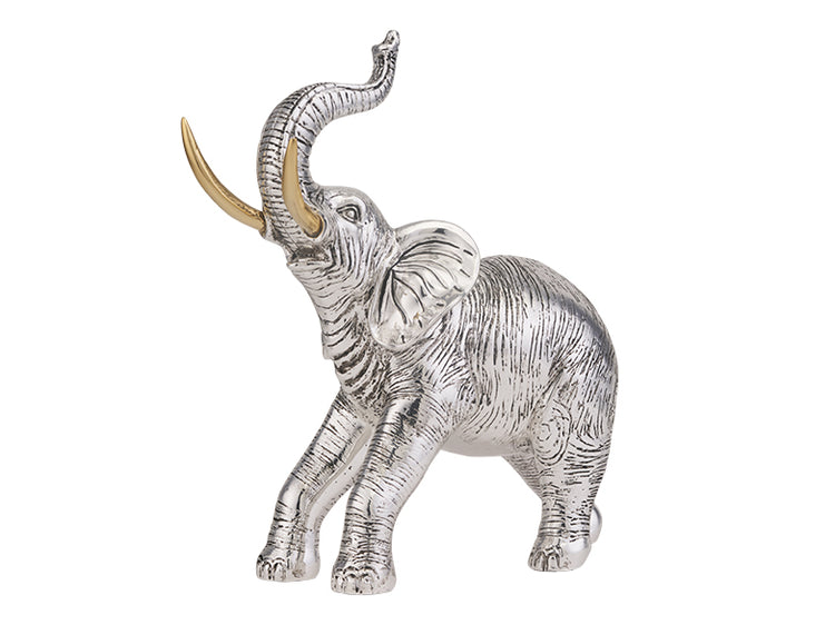 Incarnation intemporelle de la grâce et de la chance, cet éléphant à tronc argenté a été soigneusement conçu pour admirer et inspirer. Le revêtement argenté électroformé sur résine accentue les contours de l'éléphant et le design minimaliste évoque un sentiment de tranquillité, tout en reflétant l'énergie du mammifère.