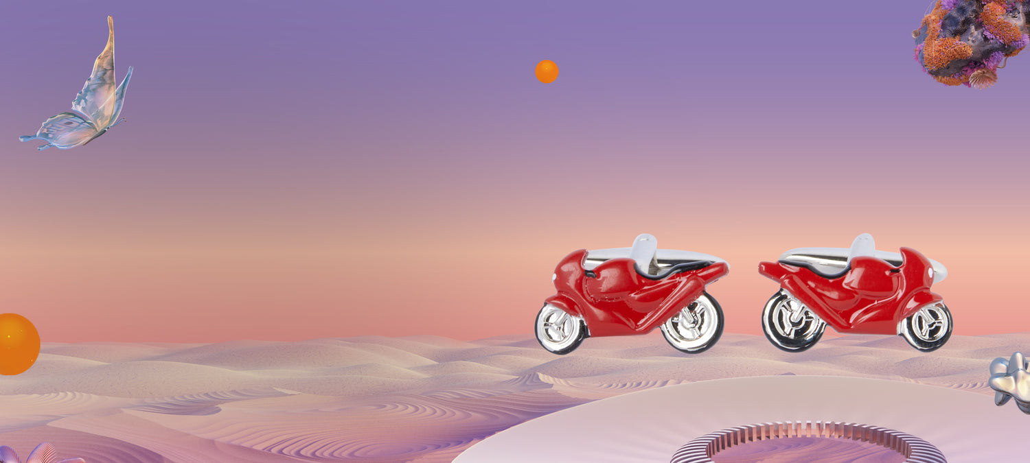 Patterned and perfected with a design that is exclusive to Shazé, these Red Bike cufflinks is inspired from modern motor bikes. Designed with brass for detailed intricacy, this pair of cufflinks comes with a statement rhodium finish.