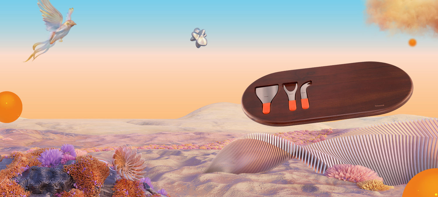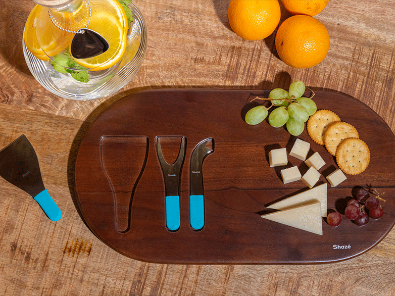 Pas de temps pour les lignes ringardes, voici une déclaration simple pour vos événements de dégustation de fromage. Conçu pour des arrangements élaborés puisque trois couteaux à fromage trouvent leur rainure dans les creux du bois d'acacia.