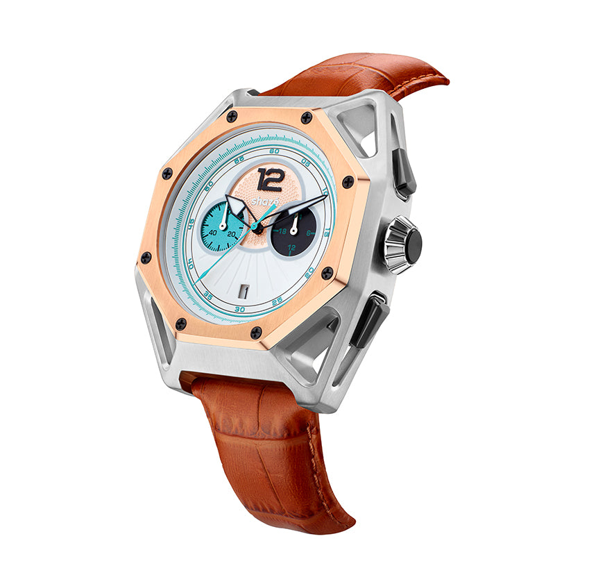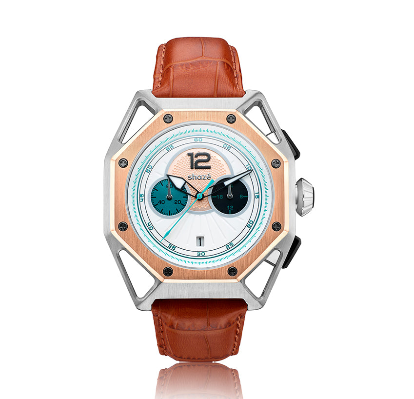 Sowing a story through celestial elements displayed on the dials, dramatizes the look of this hand gears. With a design that’s unique to Shazé, precision crafted lugs define the case of the watch.