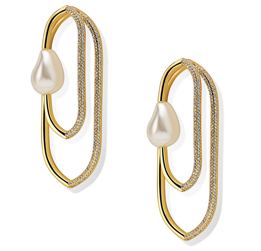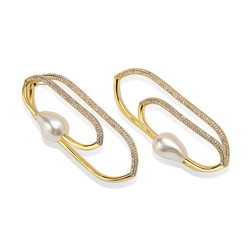 Designed with an acquired aesthetic, for an acquired aesthetic, the 18K gold plated form showcases river etched pearls and fire-birthed stones. The detailed embellishments playfully pirouette the Victorian architectural frame. A modern-heirloom if you will, the piece comes with a signature Shazé statement in design.