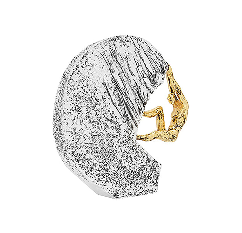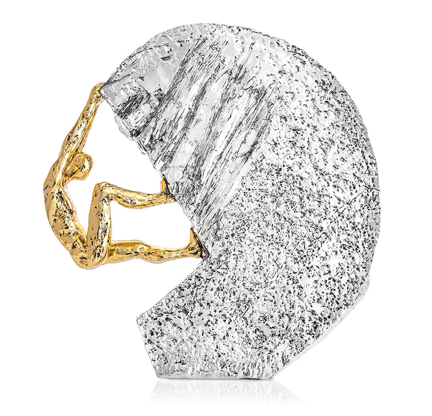 A moment of resoluteness and ambition is seized in this piece called Beyond All Limits. Crafted with high-grade resin for exceptional detailing and coated with electroformed silver to highlight textures, this piece mirrors innate drive to achieve what many may call the impossible.