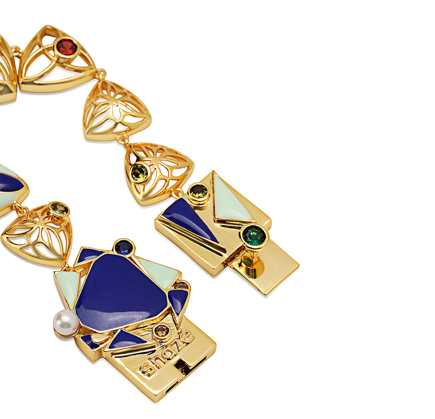 The unique convergence of material and colour is celebrated with a layer of 18K gold confidence. Fire-birthed stones create vibrant detailing in the Victorian-inspired latticework. A modern-heirloom if you will, the piece comes with a signature Shazé statement in design.
