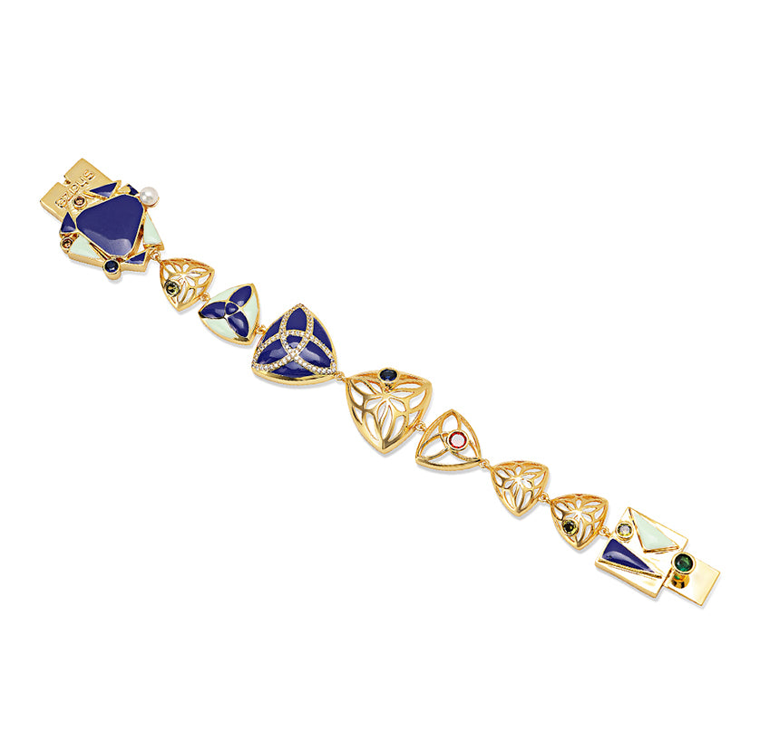A bold departure from conventional designs, the Bia's Sheild Golden Bracelet from the Everywhere I Pose Collection by Shazé, features the finest Italian craftsmanship.