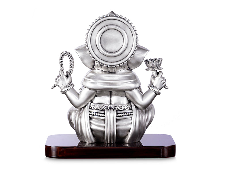 Resting on a lacquered wooden base, this handcrafted Ganesha figurine serves as auspicious Ganesha decor or a decorative silver Ganesha, perfect for silver gift items for housewarming or corporate gift items. More than décor, Bless is a timeless symbol of wisdom, prosperity, and auspicious beginnings, bringing serenity and positive energy to any space.