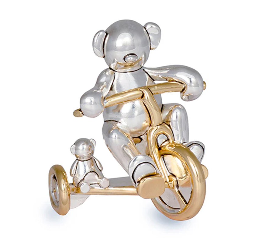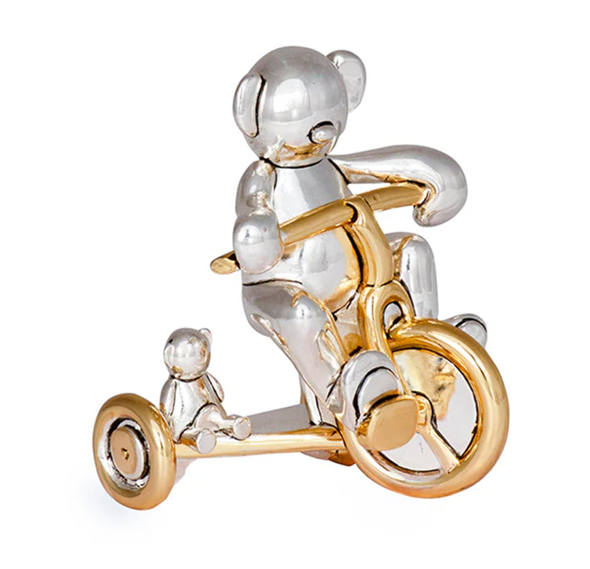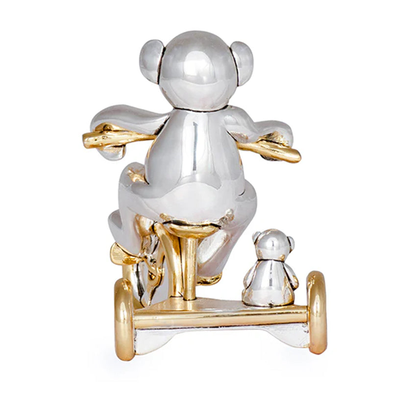Where sleek design meets soul, this chrome-finished silver bear leads the ride on a golden cycle, with its little one trailing close behind. A reimagined animal figurine that celebrates the magical bond between parent and child, built on trust, growth, and the journey together. Bold and modern, it turns connection into art.