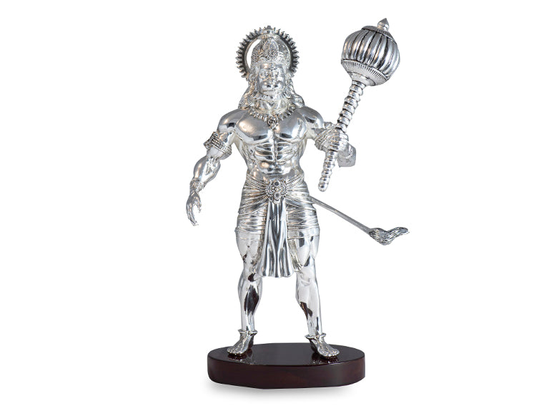 Boundless is a Hanuman statue with mace, captured in a powerful yet graceful stance. Its wide chest and open arms embody protection and compassion, while the lustrous silver chrome finish highlights every sculpted fold and contour.