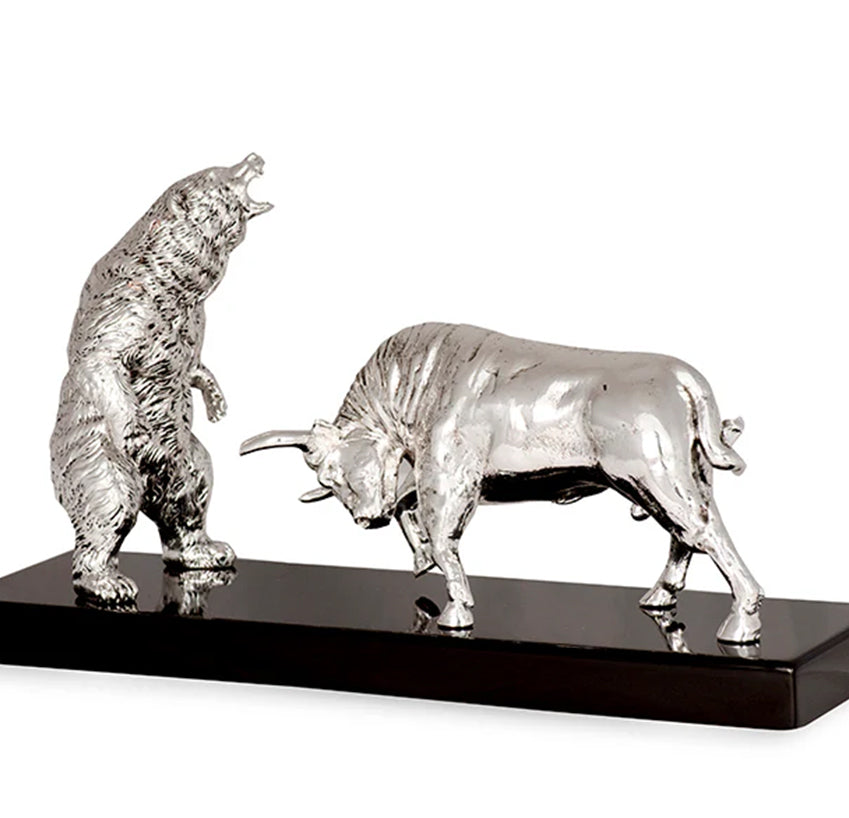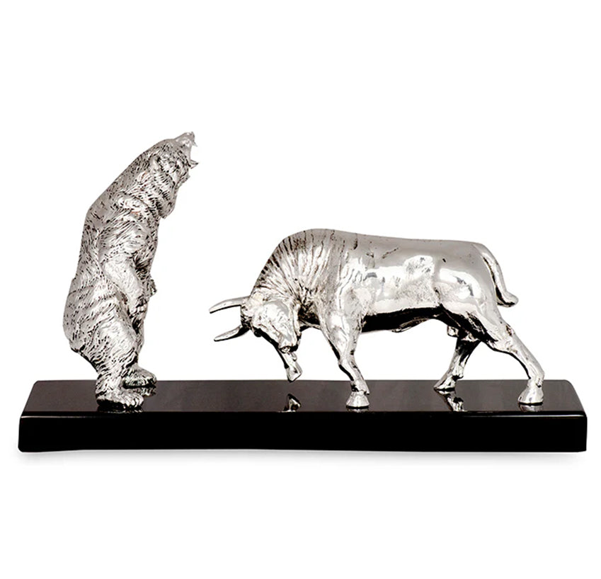 Bull ‘N Bear brings the spirit of the stock market into luxury home decor. Cast in silver and poised mid-duel, this sculpture captures the raw tension and power struggle of financial forces.