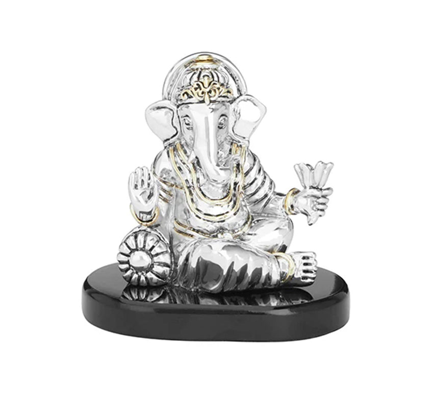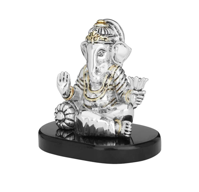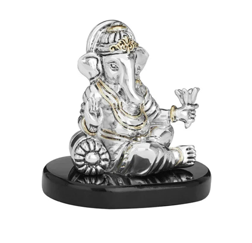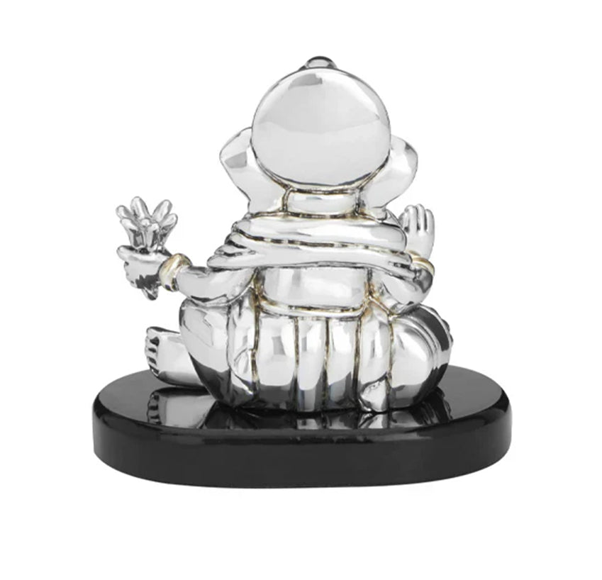 Set on a deep black base, this silver ganesha idol is a timeless addition to any pooja space or refined home interior. A modern alternative to the classic brass Ganesha statue, it blends traditional reverence with contemporary sophistication.