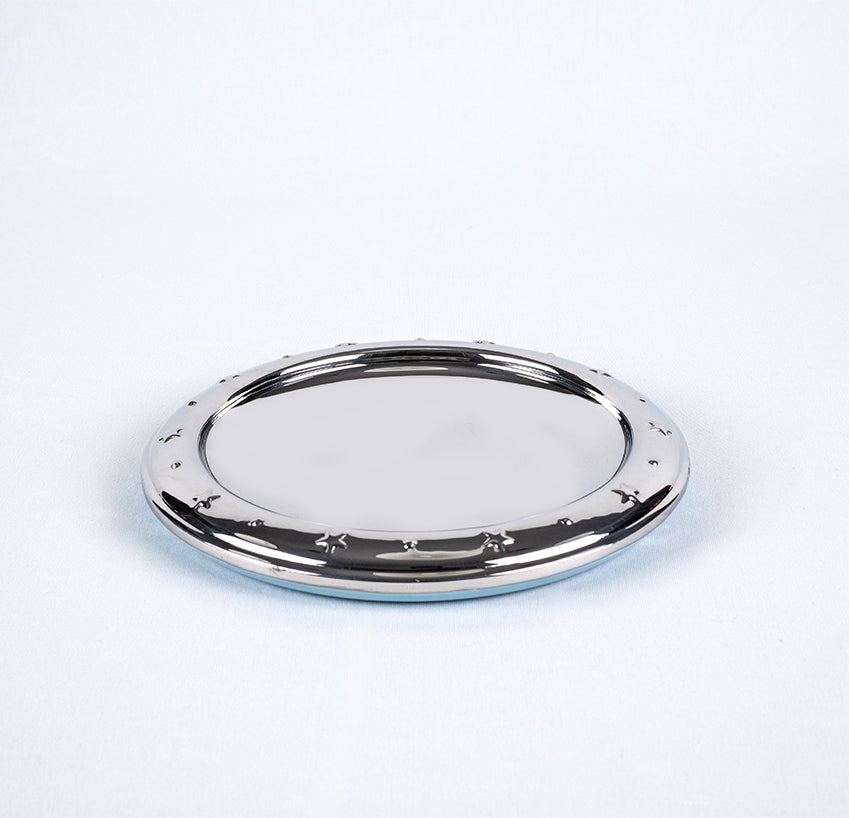 The double-walled Din Din dinner plate by Shazé comes with detailed stars embossed along its edge, making dinner time an enjoyable one. The edges of the piece are softened to allow for a comfortable hold for the child. From heart-warming purees to finger foods, this plate is designed to adapt to your baby's growing palate. With safety and care in mind, this design is attested food-grade safe.