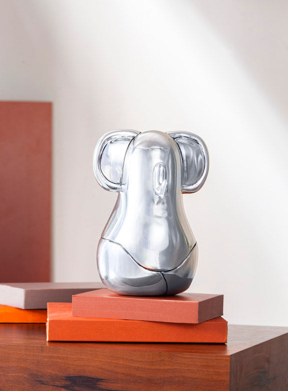 Meet Elie, a playful yet polished take on the beloved elephant. Sculpted in a smooth, abstract silhouette and finished in radiant silver chrome, this modern wildlife animal figurine captures strength with a joyful spirit. Its rounded form and endearing stance bring charm to any space, blending tradition and trend in a single stroke.