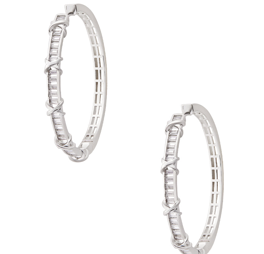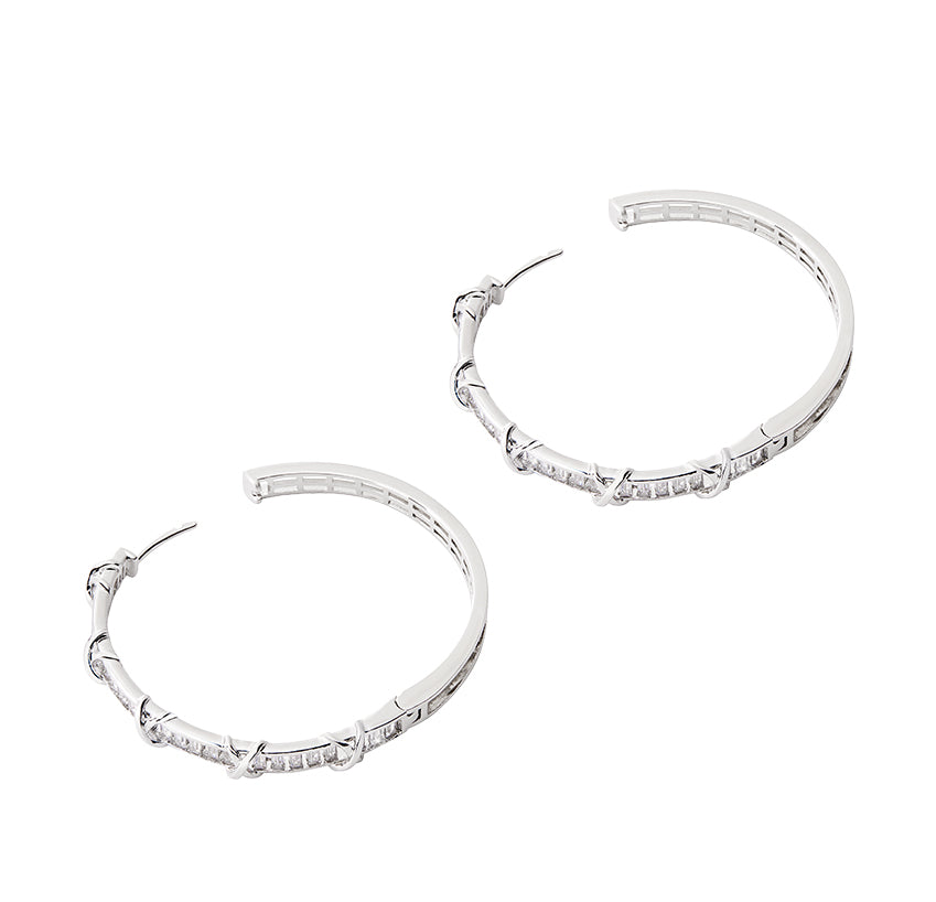 This piece introduces a novel technique of blank and bloom, unveiling an intricate design visible through the open spaces at the front. The selection of a detailed silhouette makes a profound statement in design. Adorned strategically with stones born of fire, these hoops defy the conventional approach to pairing jewellery with outfits.