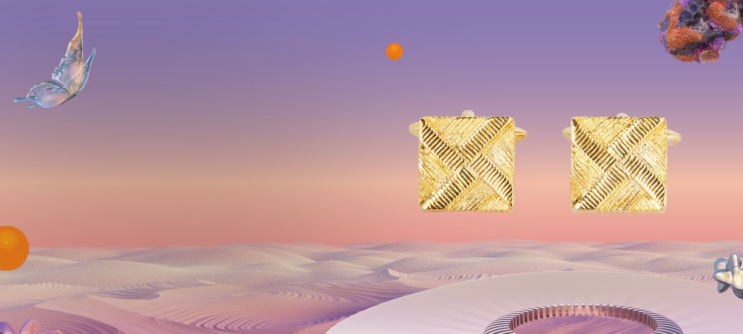 The resplendent golden finishing, this pair of Golden Square Line Cufflinks reflects an unamtched sheen with an archietectural texture. The geometric design of the square accentuates the clean lines, while the intricate detailing shows a dedication to perfection.