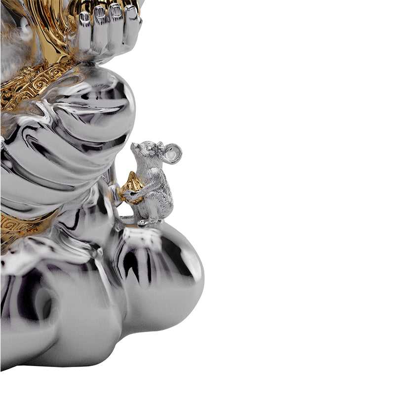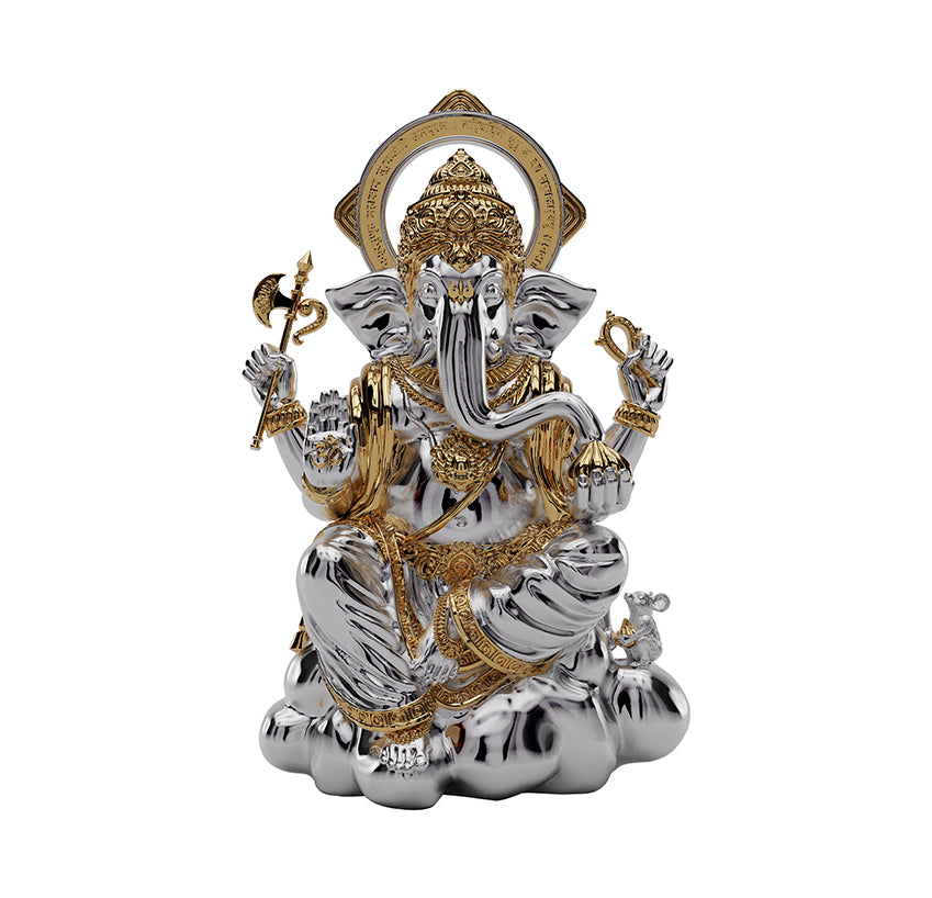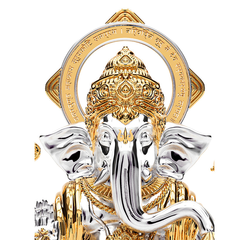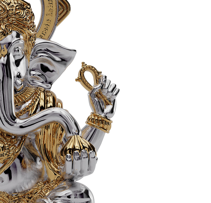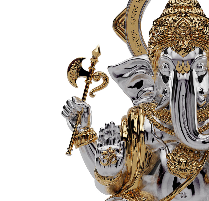 The Infinite signifies the abundant benevolence and possibilities this deity brings as he enters a space. Known best for his ever-giving spirit and the destroyer of obstacles, his nature is given due in design with precision golden detailing and high-grade silver gloss. His features, distinctly engineered to celebrate the vitality he brings.