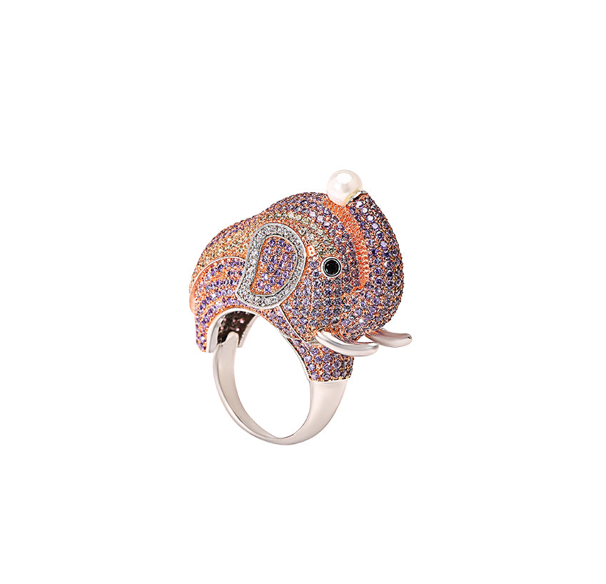 Designed to be one of its kind, this ring features a 3 dimensional design studded with fire-born zirconia stones perfect for your adventurous trips to the poles or even out of this world. Its inspiring form makes it signature and statement when paired with any travel look you choose. Hold at the tip of its trunk is a pearl perfected in its creation process. It brings to the piece a masterful mix of materials, highlighting its unseen craftsmanship and design.