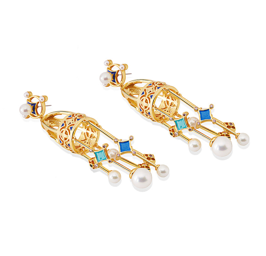 Among online jewellery brands, these earrings stand out for their unique lunar-inspired design. Whether styled with ethnic wear or western attire, they add a touch of mystery, making them a true example of elegant jewellery sets. A treasure of light for every woman.