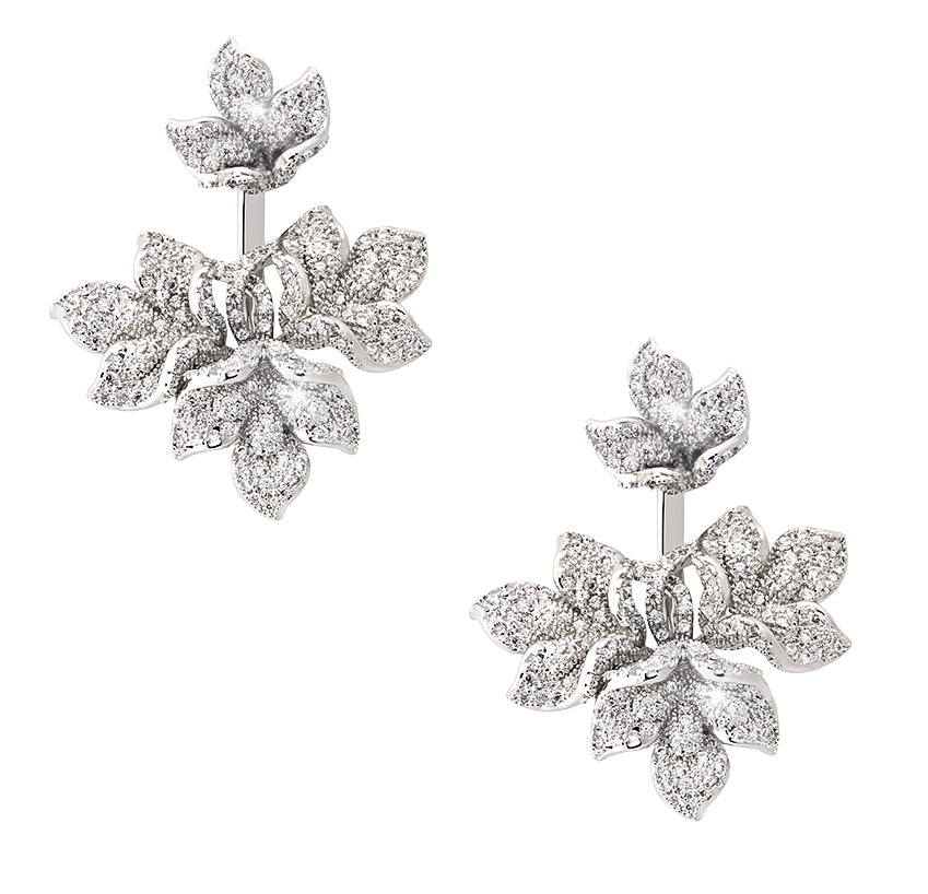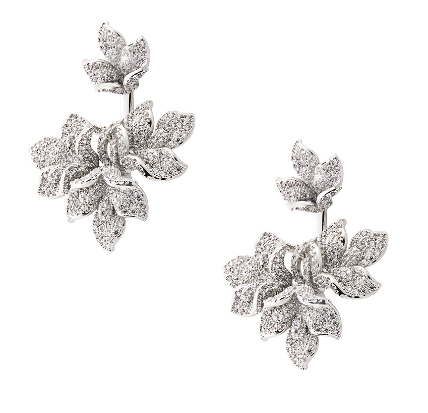 Introducing an innovative technique of blank and bloom, these earrings unveil an intricate design visible through the open spaces at the front. The carefully crafted bio-mimicry motif makes a profound statement in design. Adorned strategically with stones born of fire, these hoops challenge the conventional approach to pairing jewellery with outfits.