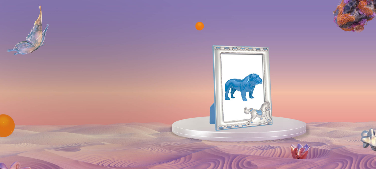 An evergreen showcase for cherished memories, the Mustang Muddles silver and blue photo frame comes in a design crafted in Italy. The piece, dense in durability owing to the Italian wood and bi-laminate silver radiating a confident luster. The clear-as-crystal glass of the photo frame embraces the memory of messy joy and adventures of your young one. The pony motif and baby blue enamel ensure a lasting playfulness to the associated moment it holds within. Shazé is where you can find and buy single photo frames online with designs that are set apart from the rest.