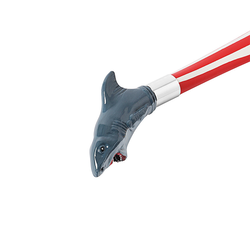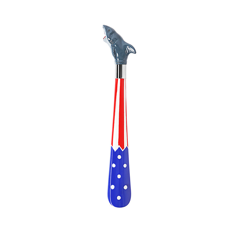 Its hand-painted handle features the head of a shark with unmatched detailing as a reminder that you navigate life's waters with confidence. Crafted from smooth, rich Italian wood, the shaft exudes timeless elegance. This isn't your average shoehorn; it's a conversation starter and a symbol of your inner strength.