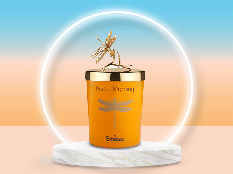 Set in Shazé orange jars, with designed lids bearing intricate motifs, our candles are a delight for the senses. Here citrusy sweetness blends with a gourmet, woody base to create the potent, warm Pastel Morning.