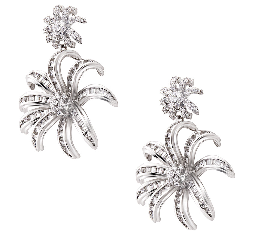 The bio-mimicry motifs within this piece infuse a theatrical drama into the ensemble it complements. Precisely arranged high-shine stones, born of fire, craft a star-like sparkle. The undulating design adds significant depth, placing the fine craftsmanship of this piece at the forefront.