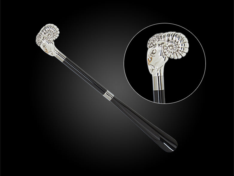 Introducing the epitome of opulence and functionality: the Silver-Plated Ram Shoehorn. Crafted to embody strength, elegance, and sophistication, this shoehorn is more than just a practical accessory—it's a style statement. Its ergonomic design ensures effortless slipping on of shoes without compromising on comfort or style. The smooth edges and polished surface protect your shoes from scratches and scuffs.