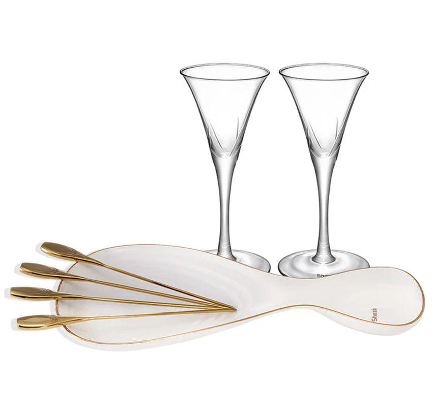 It’s a sure-shot celebration with The Skew skewer set tray and Clink, our martini glasses. Here’s a set crafted to deliver an experience unlike another. What betters the experience are, the rippling edges of the tray that riddles away excess oil and stem of the glass that allows you to conveniently hold it without tempering the temperature of the martini, that’s critical to its flavour. Let the dipping sun welcome the tunes of happy laughs, clinking glasses, and sizzling skewers. Gather round for a soirée of grilled delicacies, spirited sips, and joyful memories.
