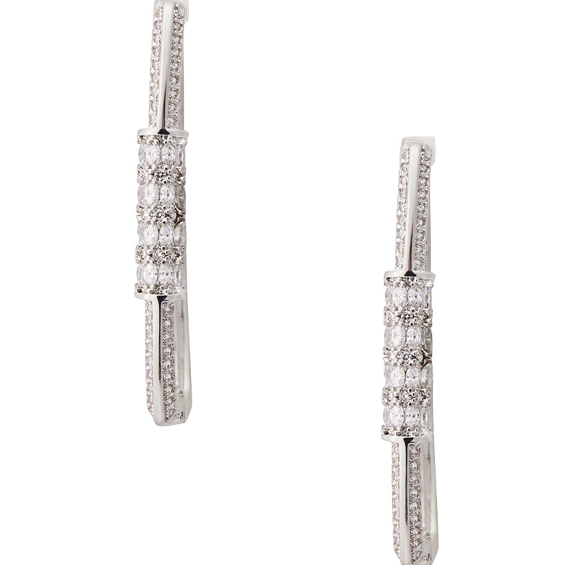 Introducing an innovative technique of blank and bloom, these earrings unveil an intricate design visible through the open spaces at the front. The careful selection of a detailed silhouette makes a profound statement in design. Adorned strategically with stones born of fire, these hoops challenge the conventional approach to pairing jewellery with outfits.