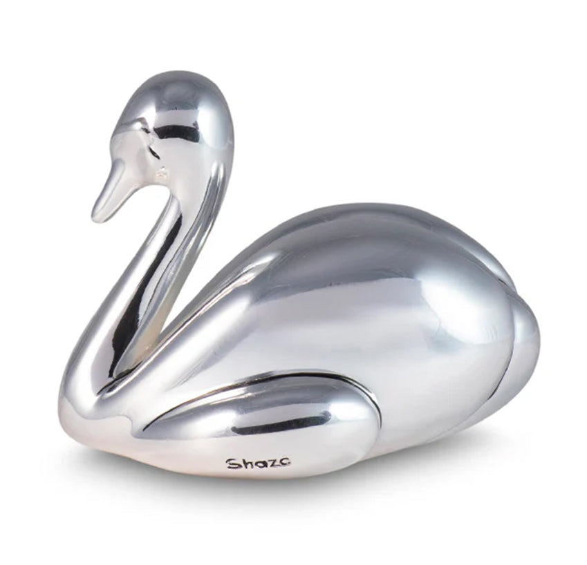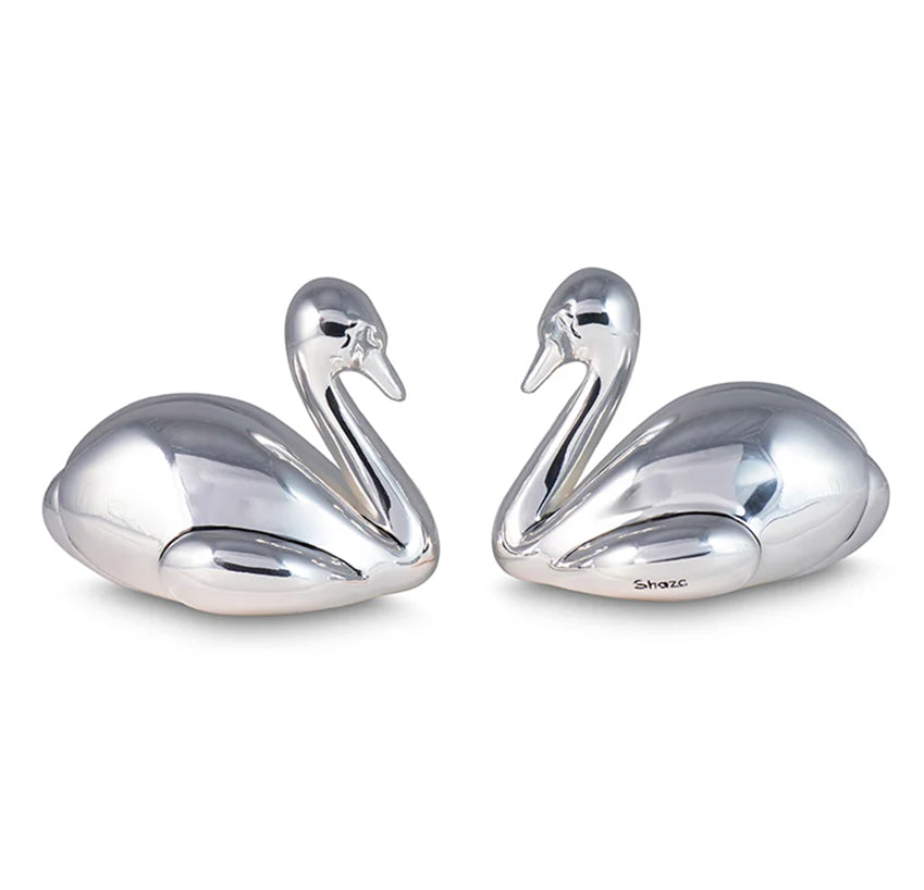 Swanderful Duo is a silver swan couple statue that celebrates the timeless bond of love. Rendered in a mirror-polished silver chrome finish, the fluid forms of the swans mirror each other in perfect harmony, capturing both grace and emotion.