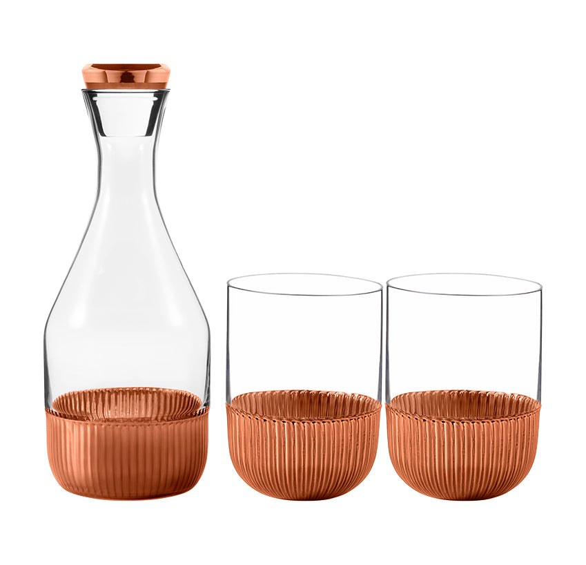 Designed to make even drinking water, suave. The clear beauty of moulded crystal finds itself resting in a metallic decal. Add in the proud stance of precise linear patterns and the result - The Nova.