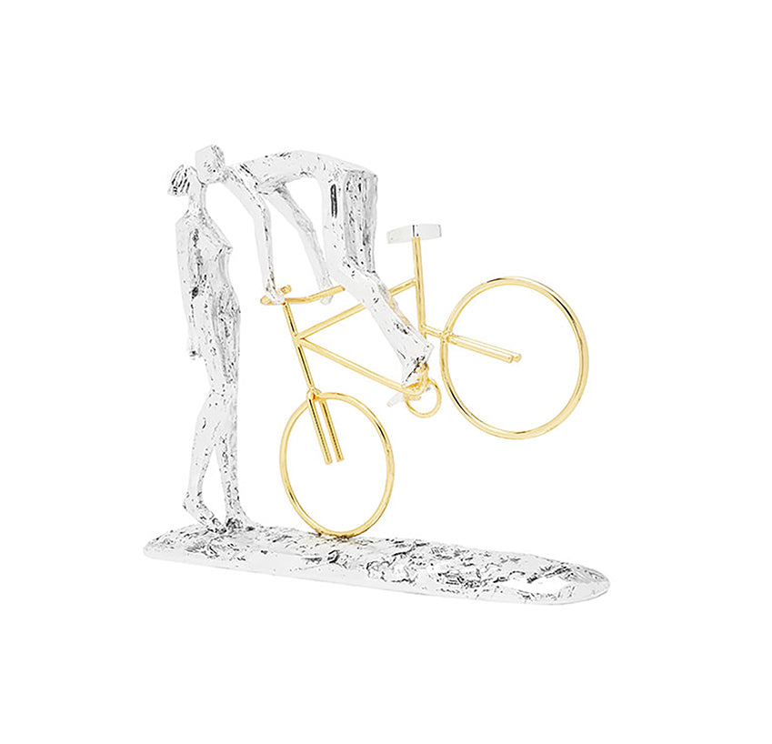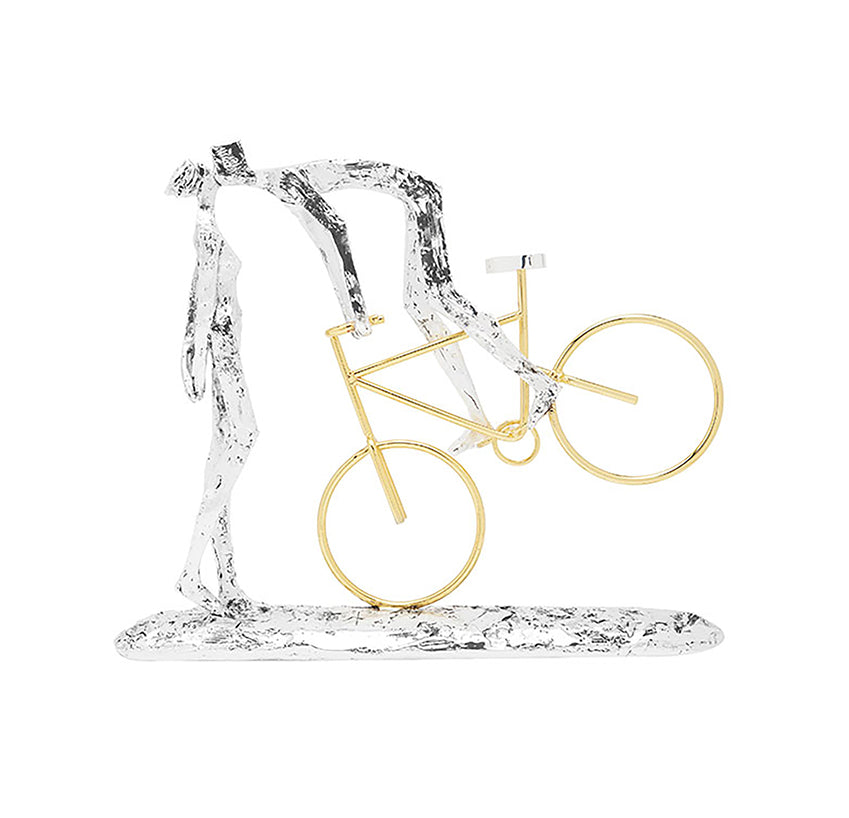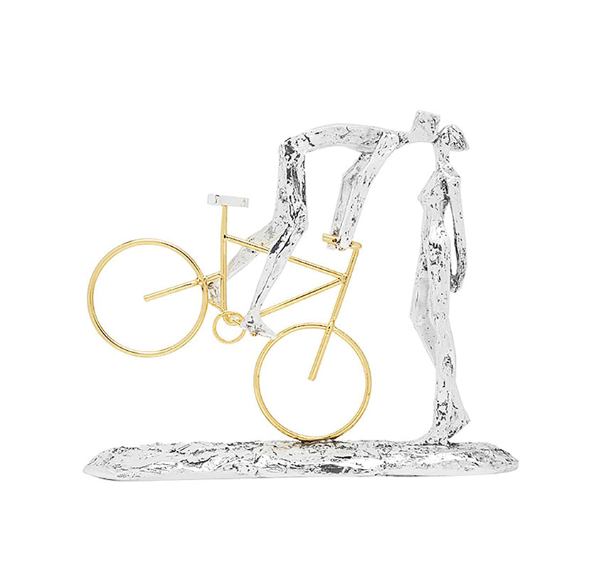 Creating in time a moment of sheer softness, The Prized reflects a fondness shared between two charaters. Adding playfulness to the scene is the tilt in the golden accent bicycle. Old school affection translates into a modern rendition in form, texture and colour.