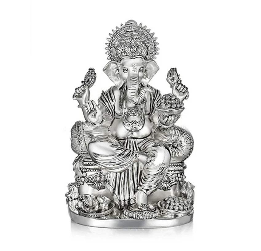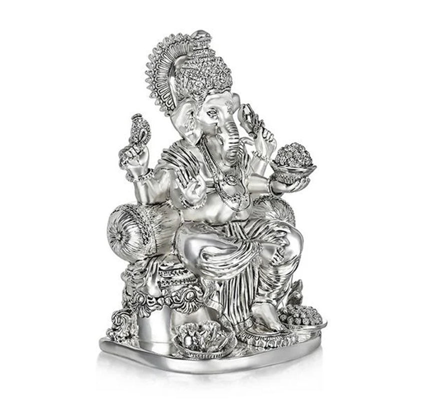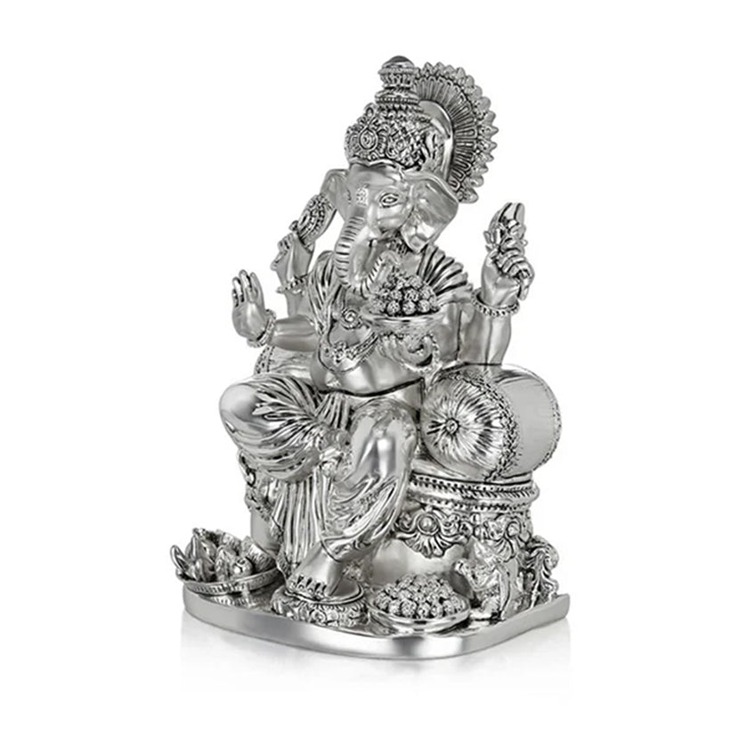 Designed to showcase this deity in all its glory with precision details and a silverised form. This piece of décor is textured with a gloss and satin finish to emphasi ze its bold and calm aura.