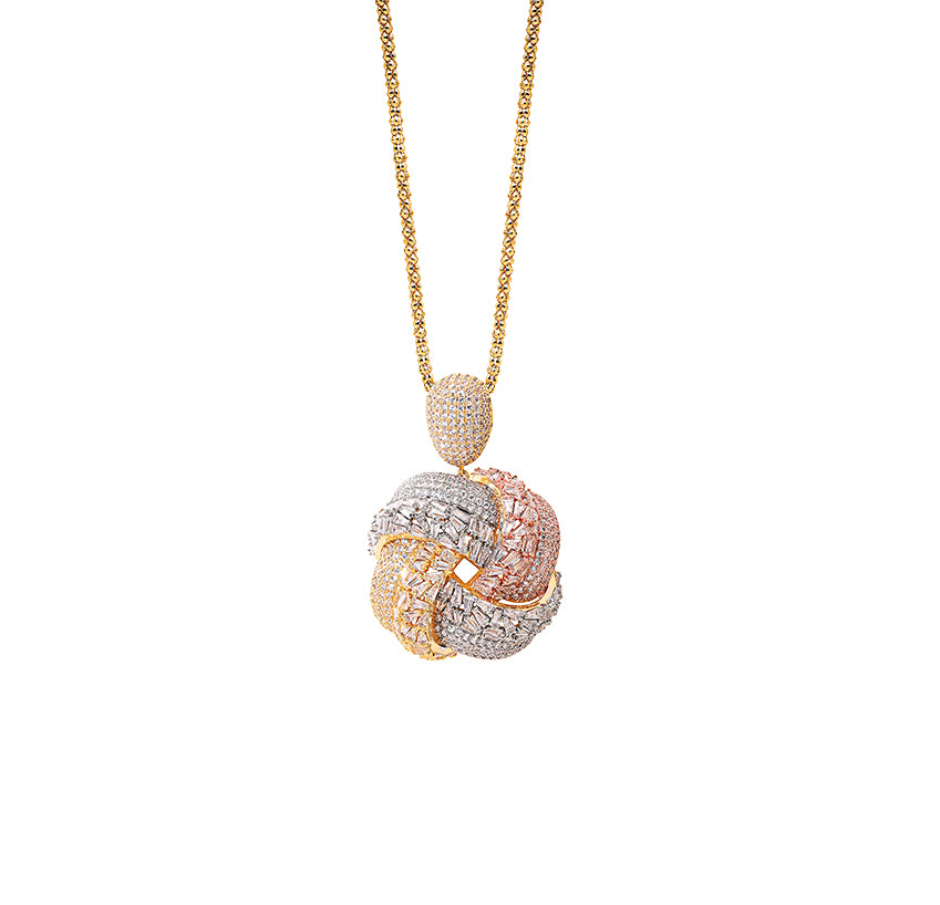 A re-imagination of flora at the deep end of the sea. The masterful mix of materials is seen in the metal frame cast with fire-born zirconia stones. Carefully selected, the stones are chosen for their precision cut and unmistaken clarity. The element of out-of-this-world whimsy comes through its masterful mix of materials, making this a travel essential to pair with your holiday ensemble.