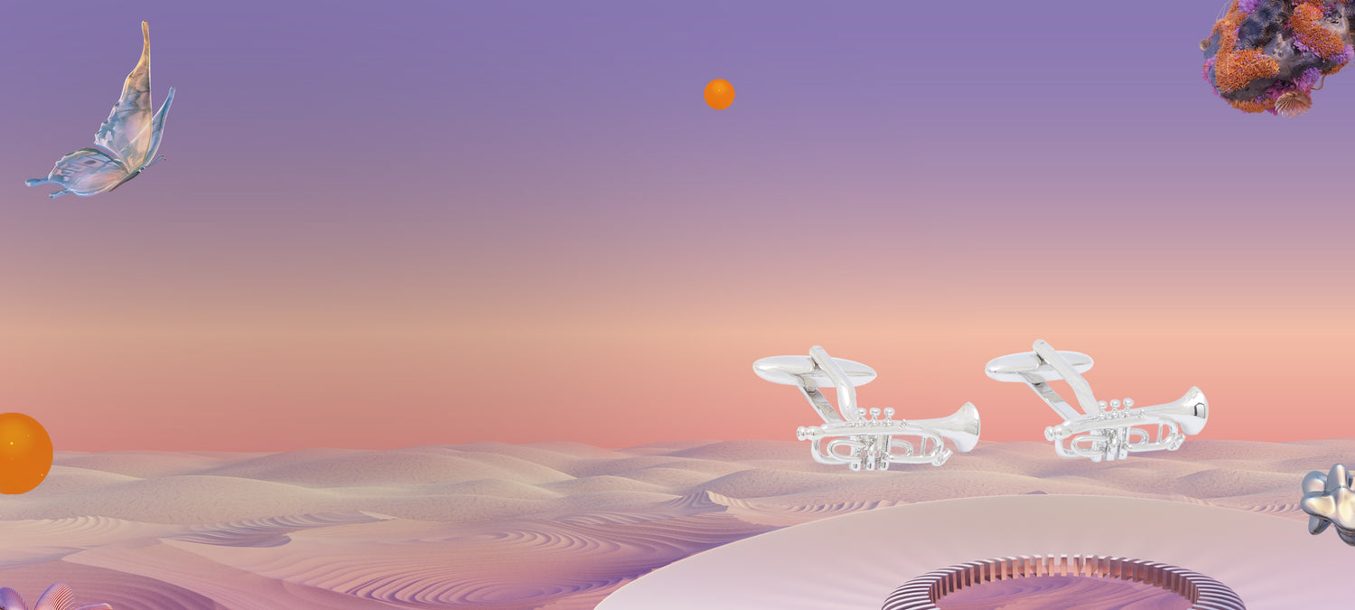 A unique rendition of the jazz musical instrument, the Trumpet cufflinks come in a detailed design. The high-grade finish and the silverised look celebrates the design with a modern sensibility.