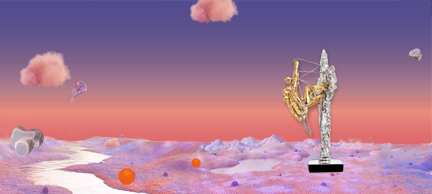This silver and golden coated sculpture depicts a harmonious ensemble of 5 human figures, united in their quest to reach the top. Crafted with utmost detailing, this piece captures the essence of human synergy and shared ambition.