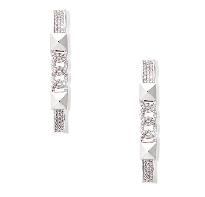 Presenting a creative interplay of emptiness and blossoming in its design, the earrings reveal an intricate pattern that captivates through the open spaces at the front. Opting for a finely detailed silhouette, they assertively make a significant statement in design. Strategically adorned with stones forged by fire, these hoops fearlessly defy conventional norms in the domain of accessorizing outfits.